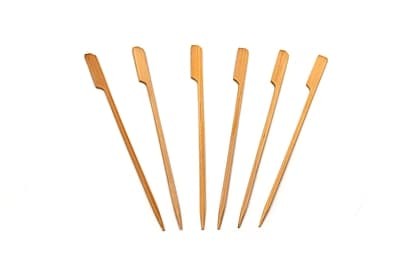 Bambusowe patyczki na przekąski mają długość ok. 20 cm. W opakowaniu znajduje się 100 sztuk. Są ekologiczne, wytrzymałe i dopuszczone do kontaktu z żywnością.
