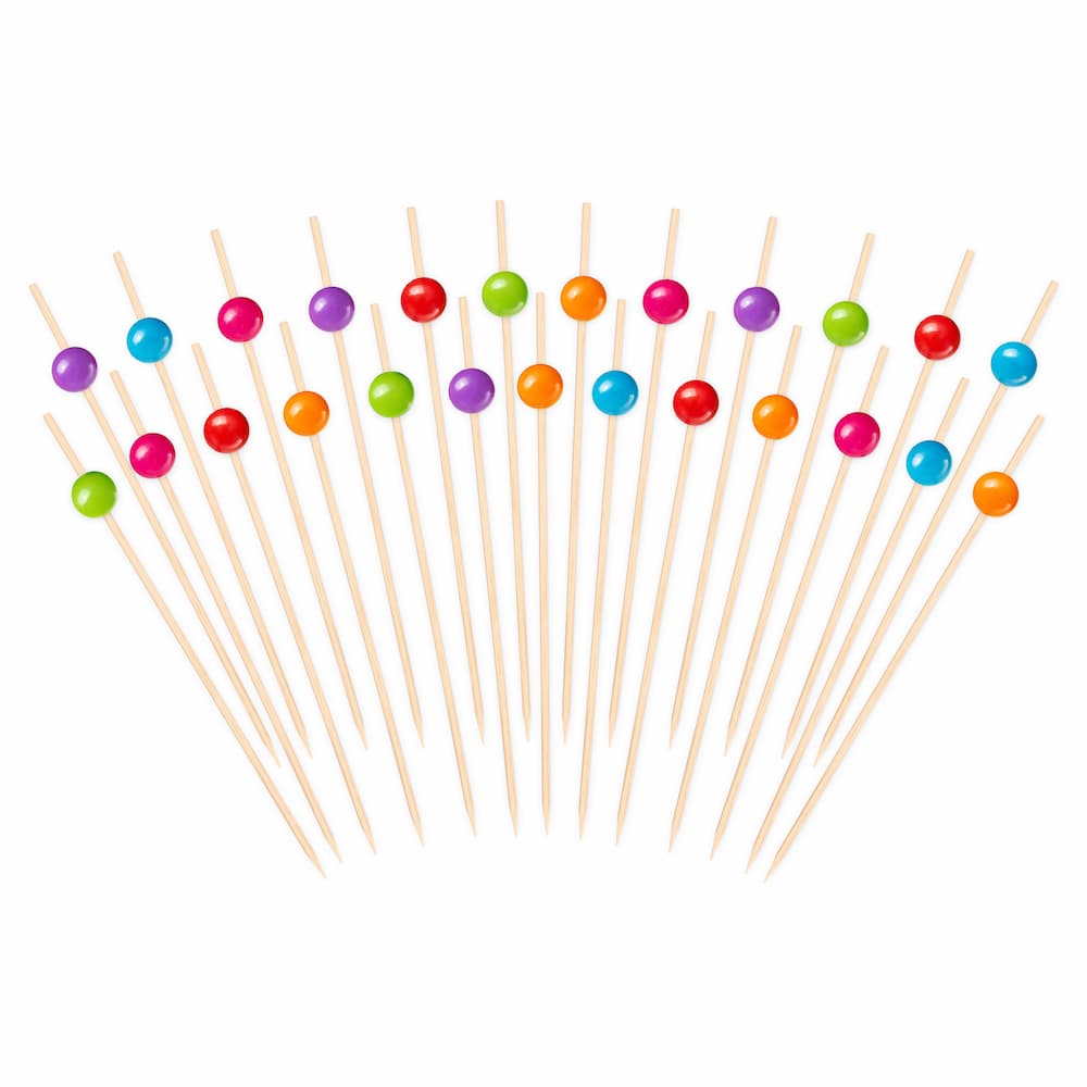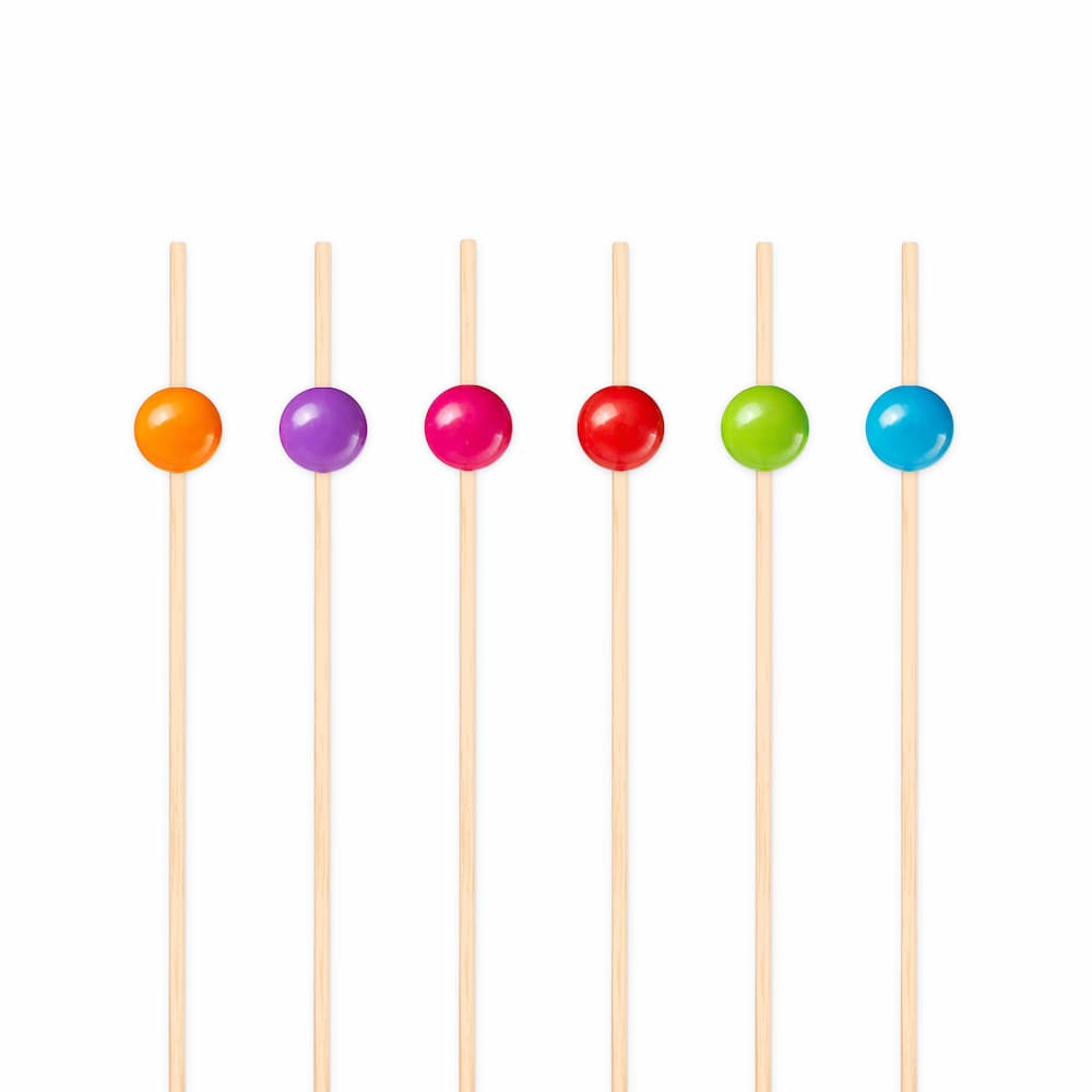 Patyczki wykałaczki bambusowe koktajlowe do przekąsek kolorowe kulki, 25 szt.