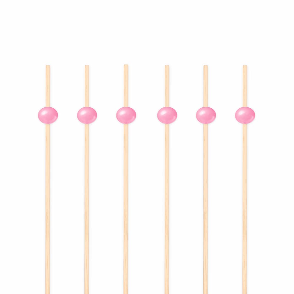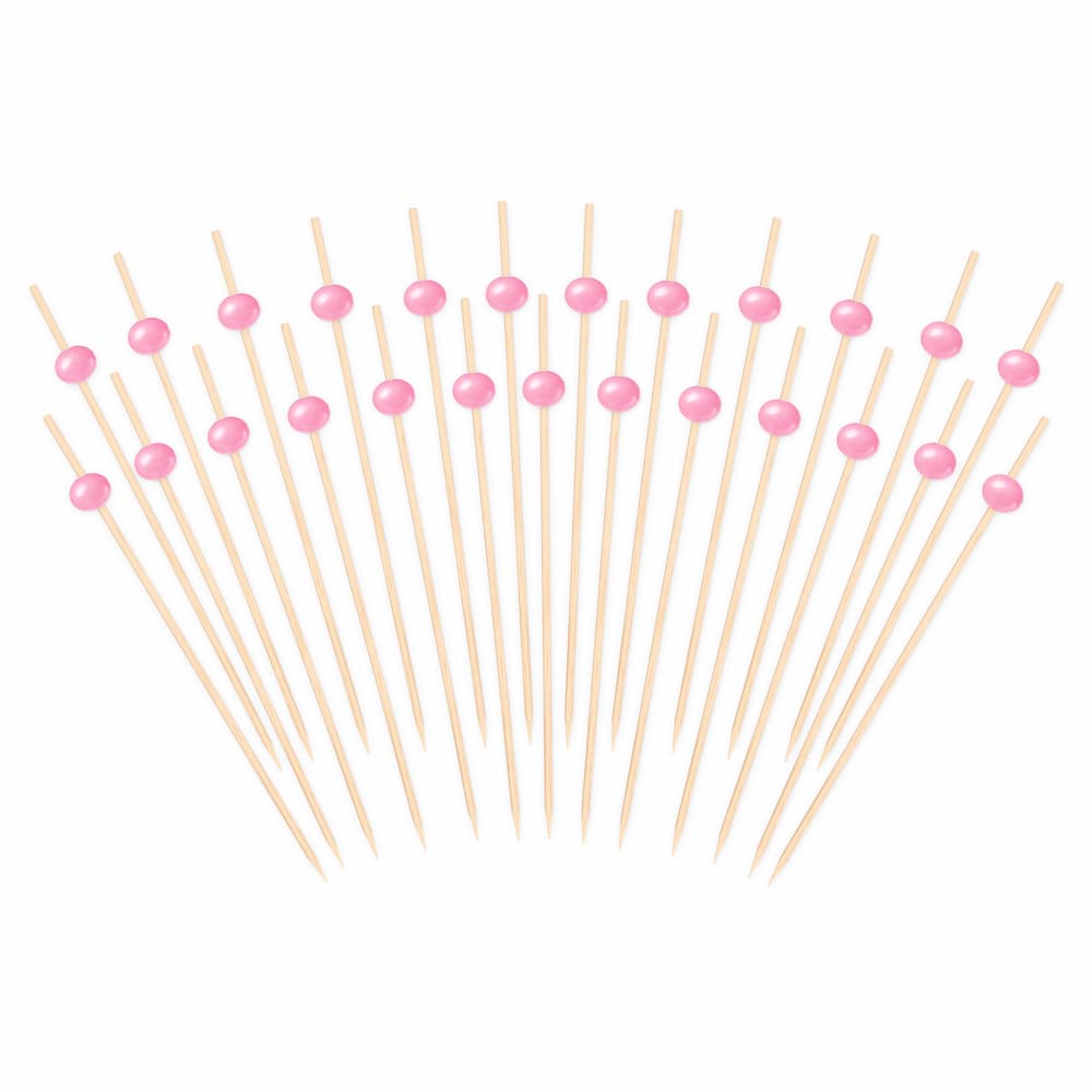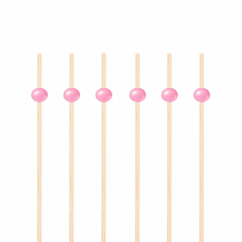 Patyczki wykałaczki bambusowe koktajlowe do przekąsek różowe kulki, 25 szt.
