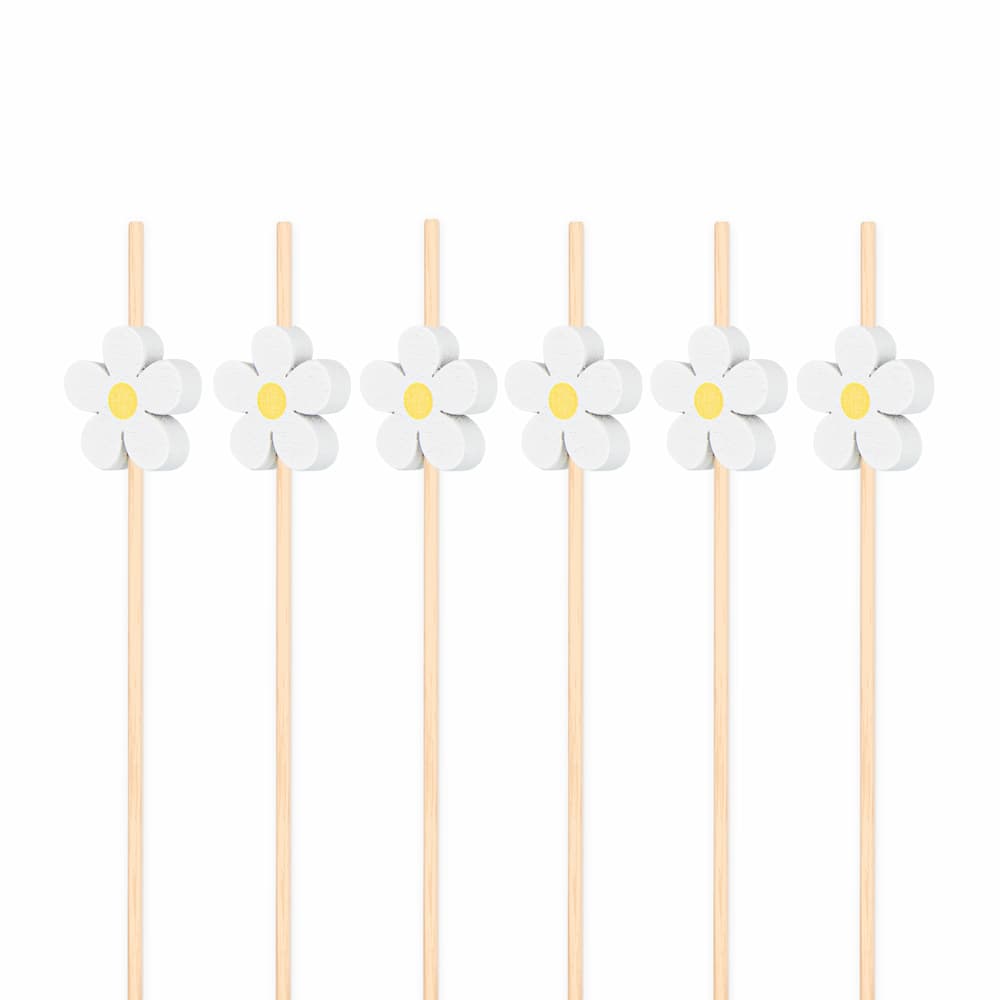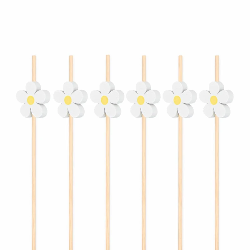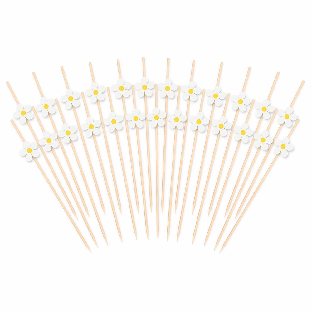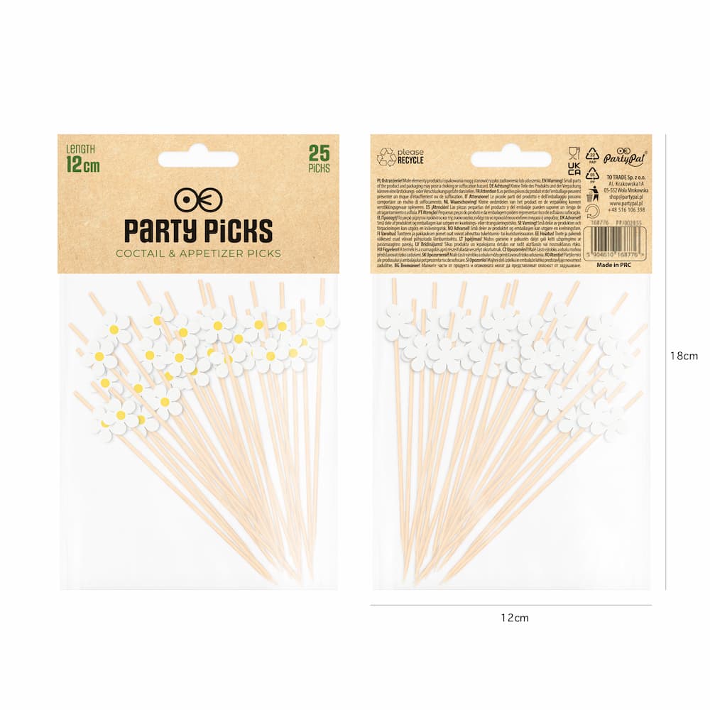 Patyczki wykałaczki bambusowe koktajlowe do przekąsek stokrotki, 25 szt.