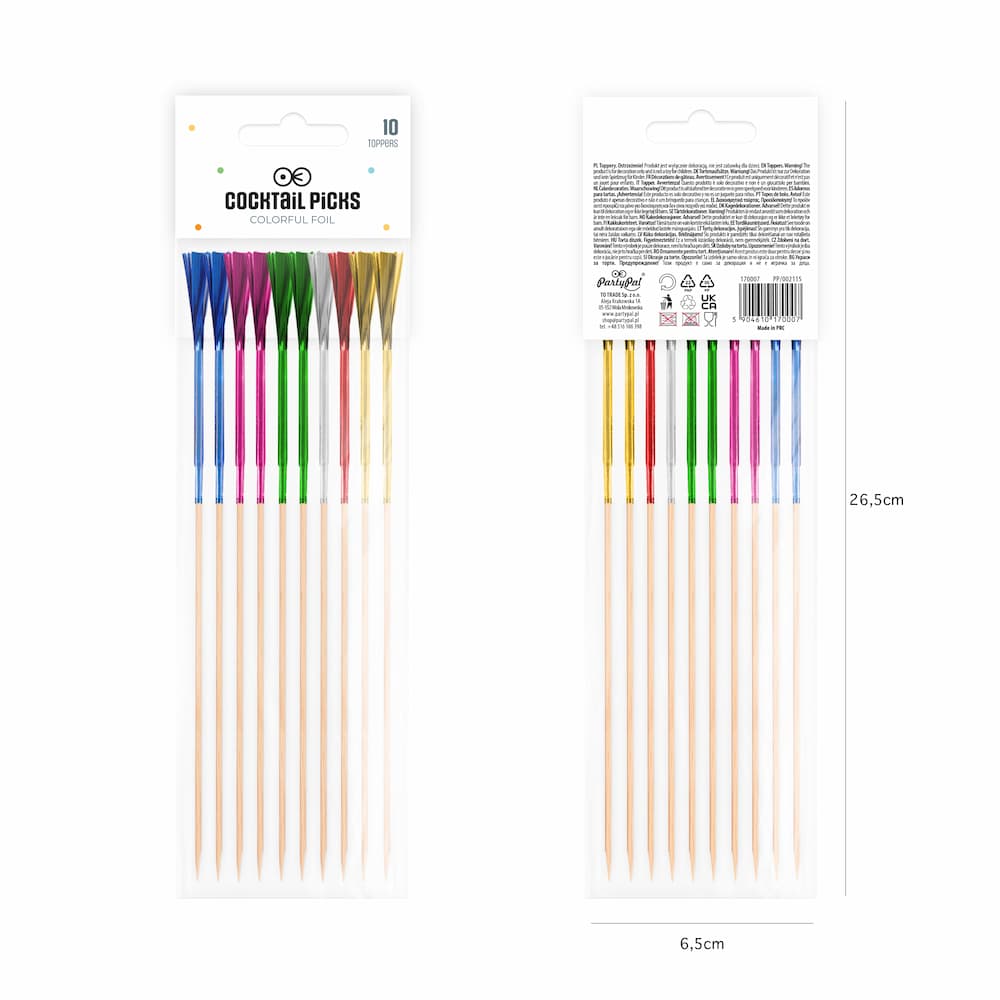 Patyczki koktajlowe fajerwerki kolorowe mają wysokość 22,5 cm. W opakowaniu znajduje się 10 sztuk ozdobnych pikerów.