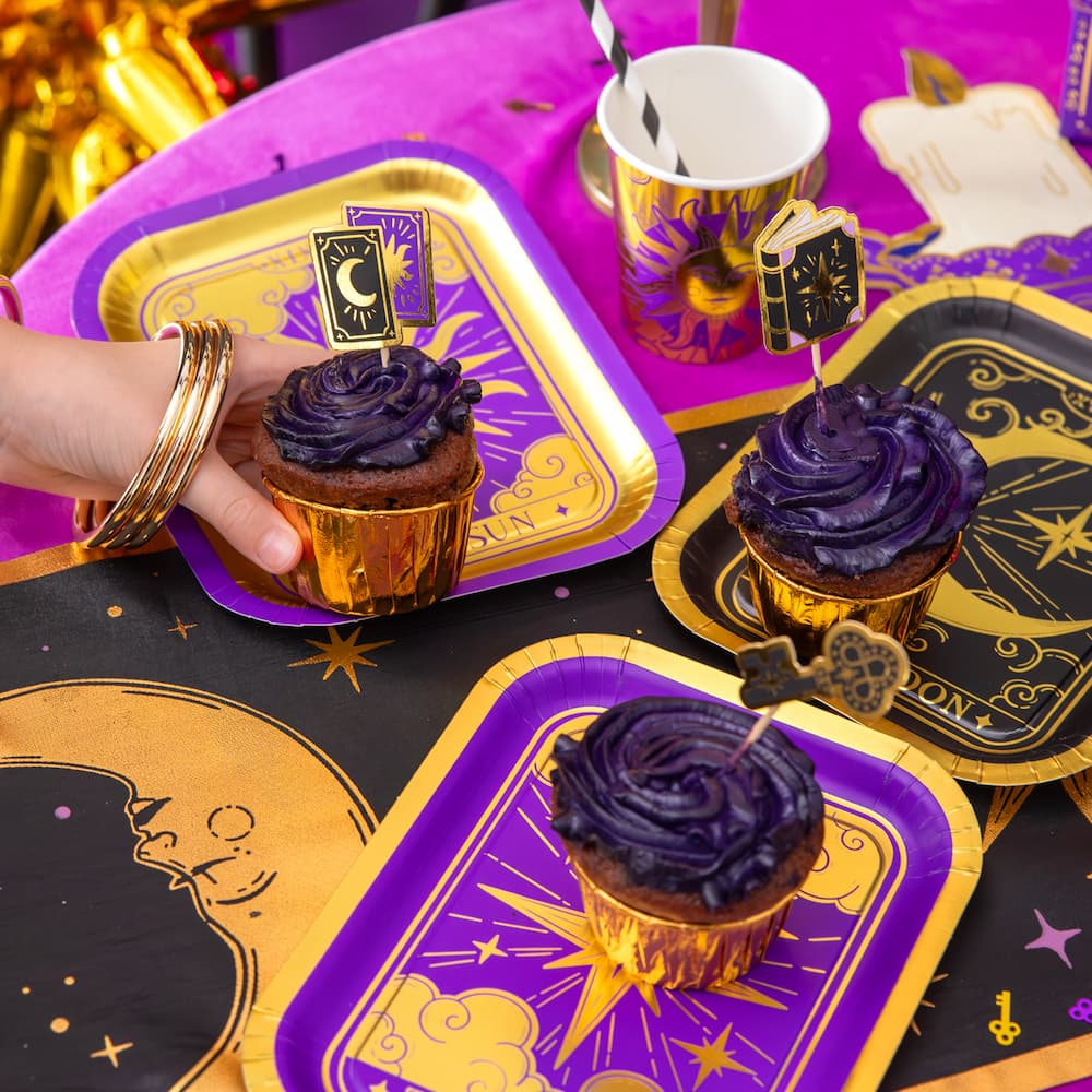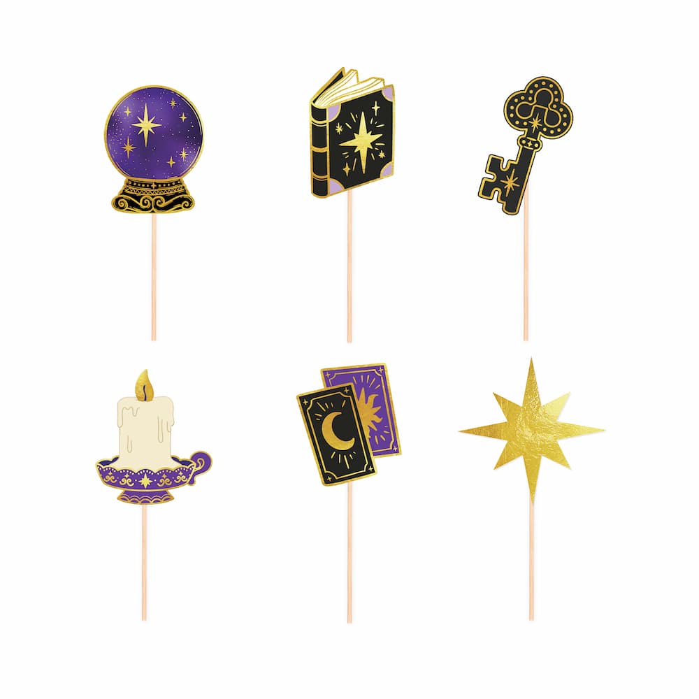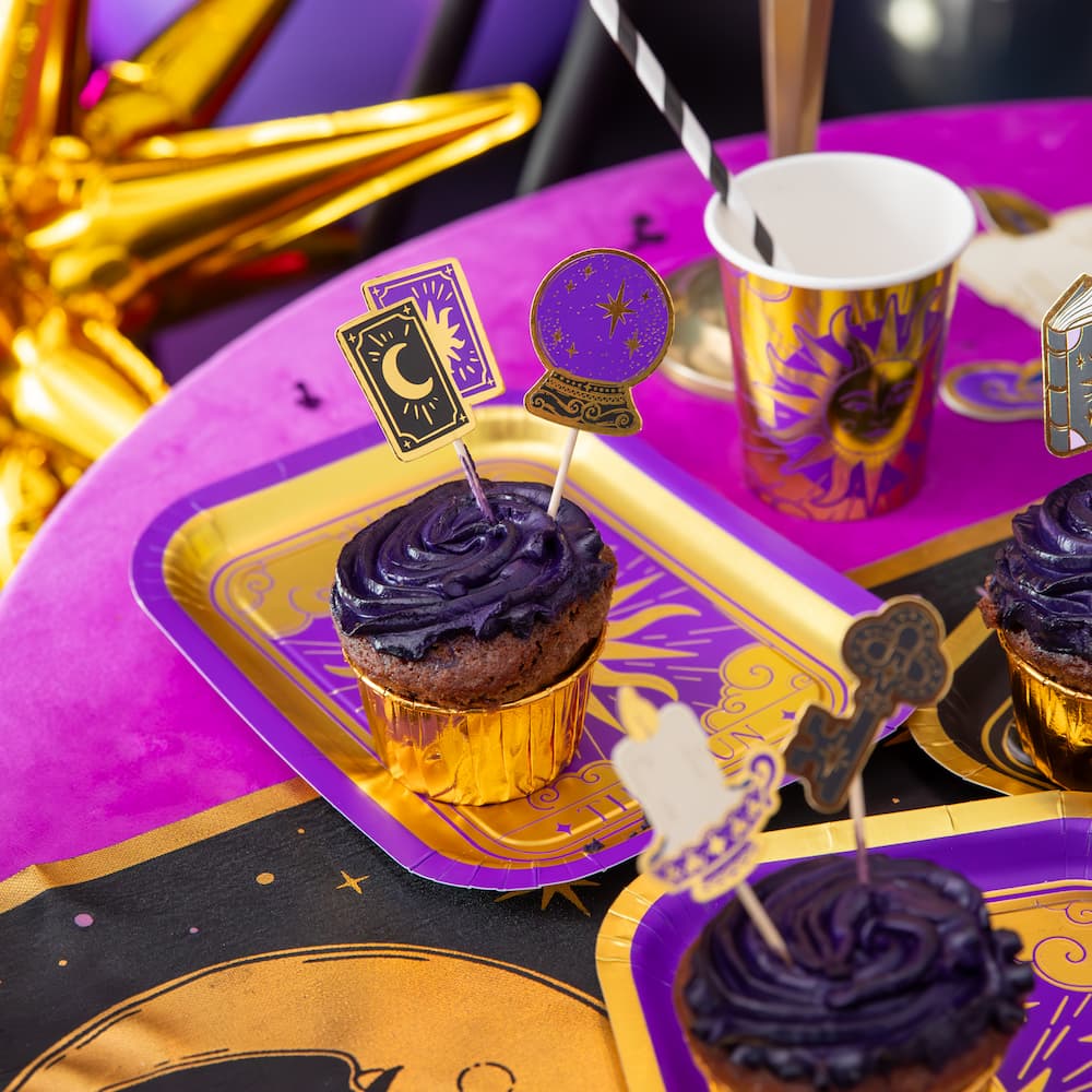 Nadaj deserom czarodziejskiego sznytu dzięki pikerom do muffinek Andrzejki. Każdy kęs z takim topperem to mały rytuał – idealny do zdjęć i filmików z imprezy. Wbij je w babeczki, tartaletki lub koreczki, aby stół wyglądał jak z niebiańskiego sabatu. Zestaw sześciu sztuk pozwala podkreślić motyw wróżb i tajemnic w słodkiej strefie. Słodkości zyskają status przepowiedni: im więcej, tym lepszy los na cały rok!