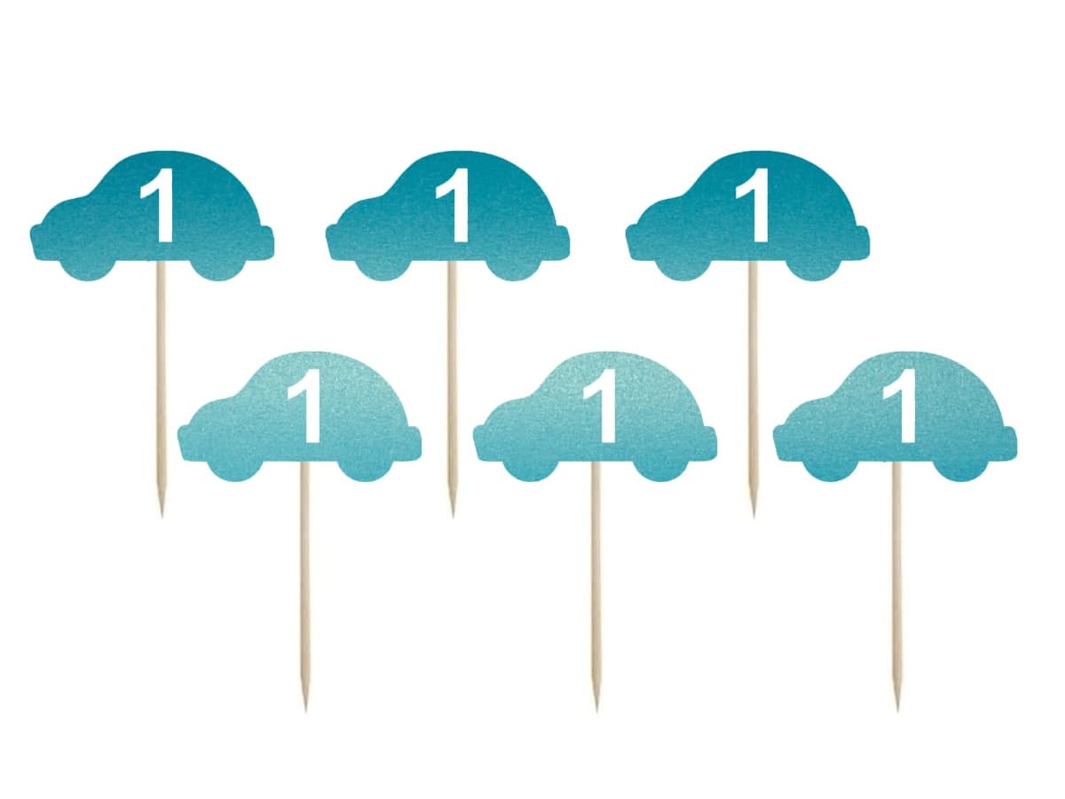 Pikery dekoracje do muffinek babeczek Autka Samochodziki na roczek, 6 szt.