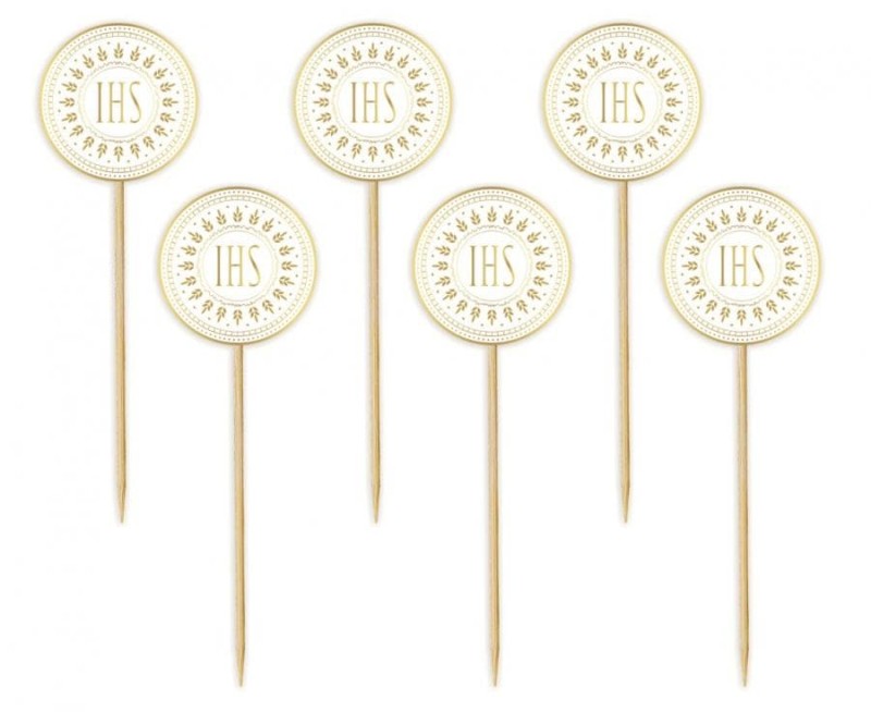 Pikery do babeczek IHS Komunia Święta, 6szt.