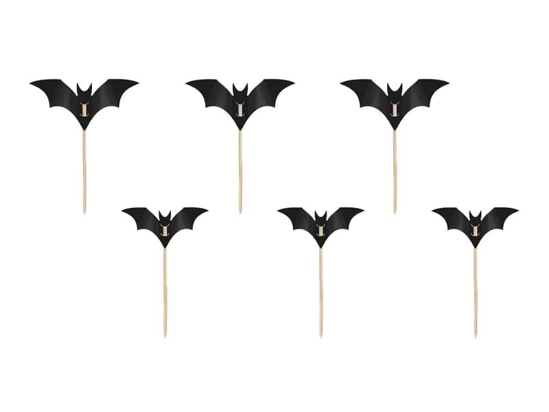 Pikery dekoracje do muffinek babeczek Nietoperze Halloween, 6 szt.