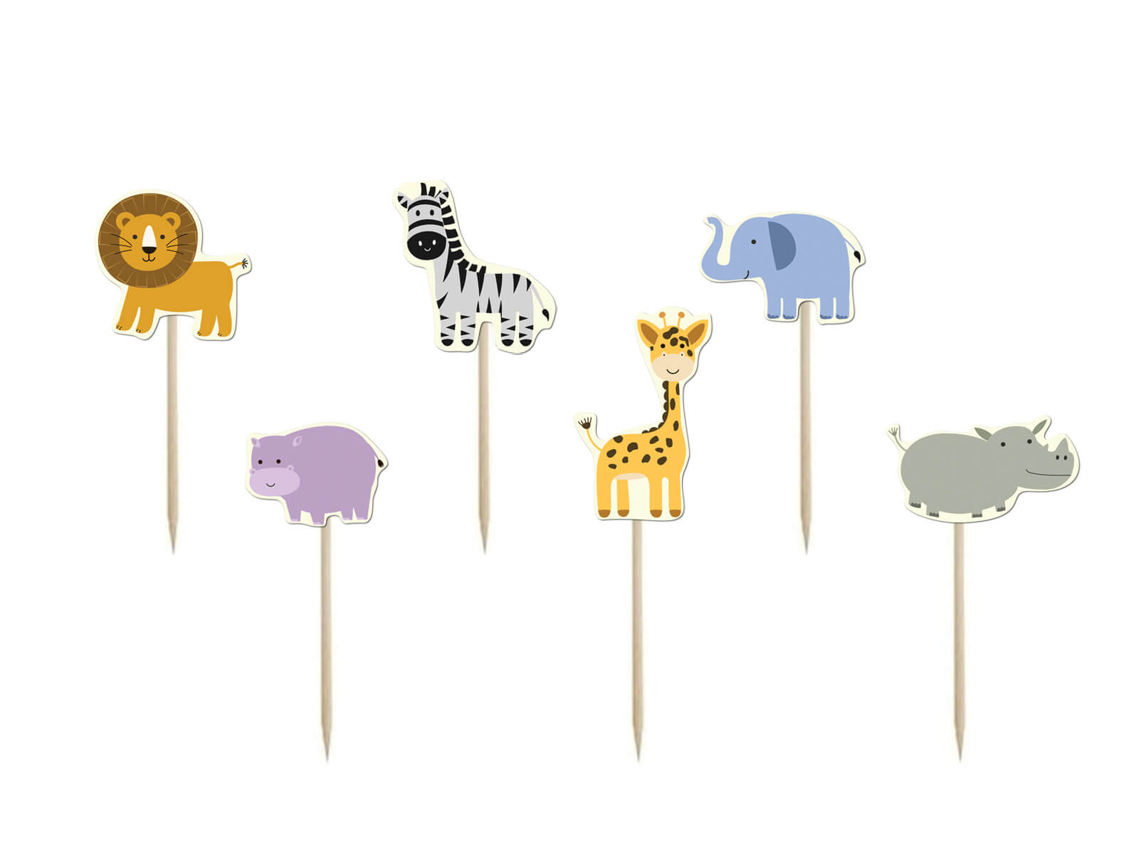 Pikery dekoracje do muffinek babeczek zwierzęta Safari kształty, 6 szt.