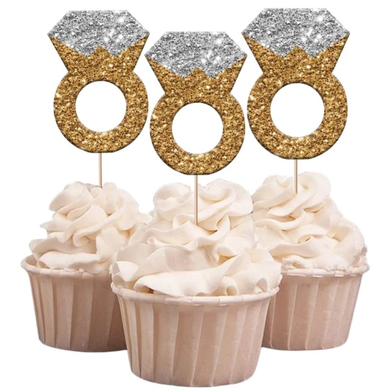 Pikery dekoracje do muffinek babeczek złoty pierścionek, 8 szt.