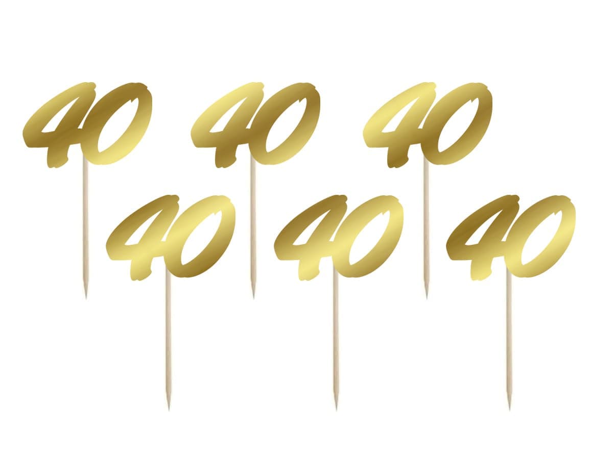 Pikery dekoracje do muffinek babeczek 40 urodziny czterdziestka złote, 6 szt.