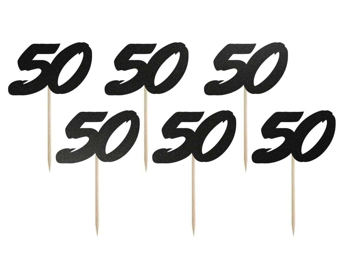 Pikery dekoracje do muffinek babeczek 50 urodziny pięćdziesiątka czarne, 6 szt.