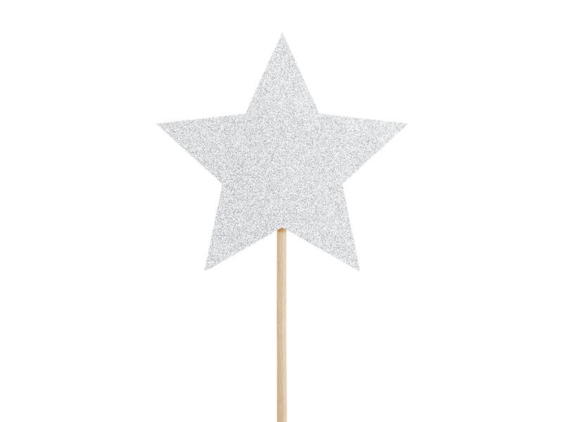 Dekoracje do muffinek Jednorożec - Gwiazdki w kolorze srebrnym brokatowym, wysokość ok. 11,5 cm.