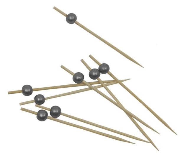 Patyczki wykałaczki bambusowe koktajlowe do przekąsek Srebrne Kulki, 100 szt.