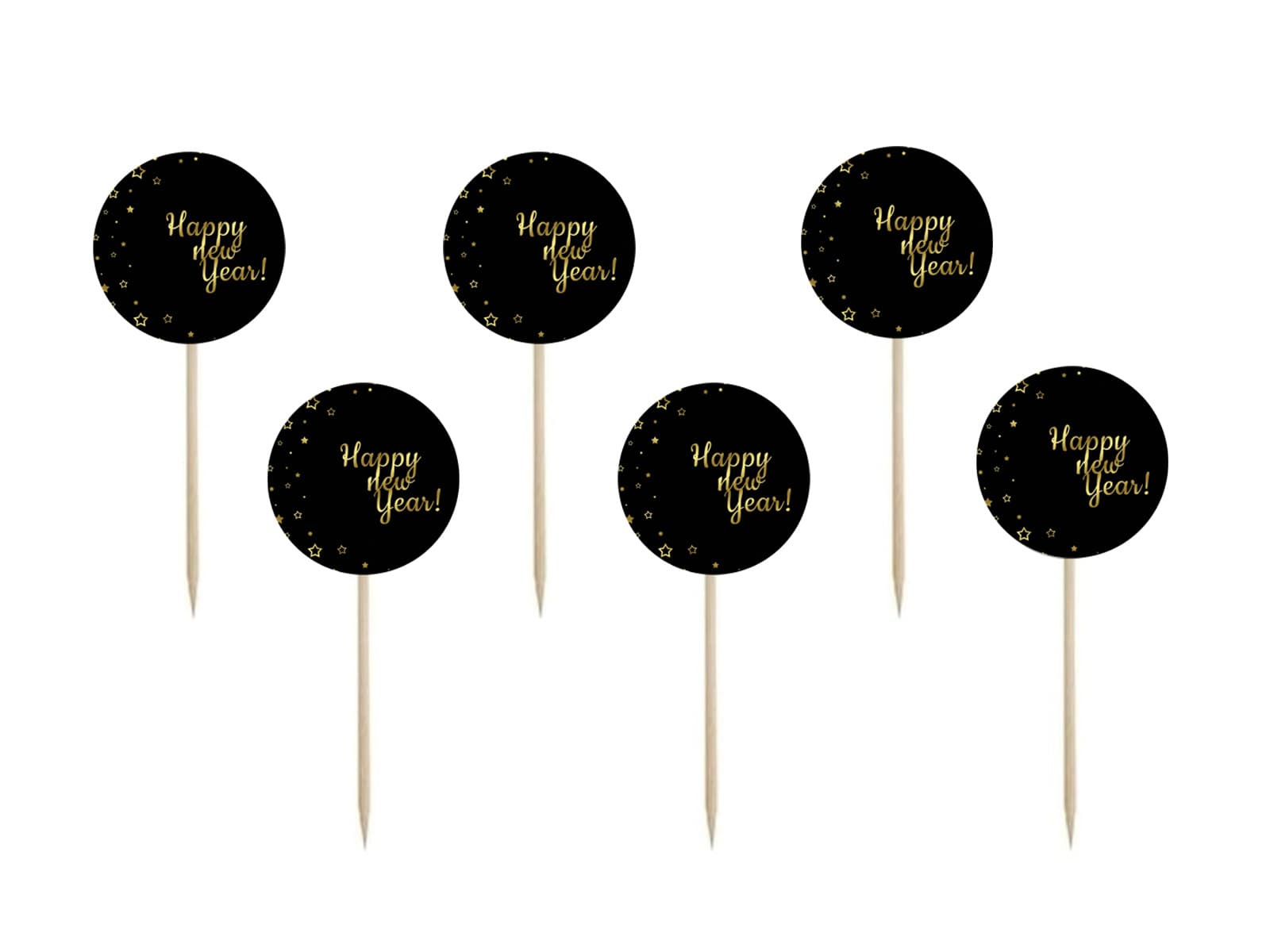 Pikery dekoracje do muffinek babeczek na sylwestra Happy New Year, 6 szt.