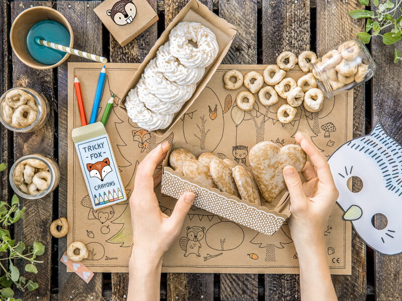 Upieczone przez Ciebie ciasteczka lub te kupione w sklepie- każde potrzebują odpowiedniej oprawy. Taką zapewnią im pudełka na ciasteczka z kolekcji Leśny Świat! Wraz z innymi leśnymi dekoracjami stworzą piękną oprawę każdego przyjęcia- nie tylko dziecięcego.