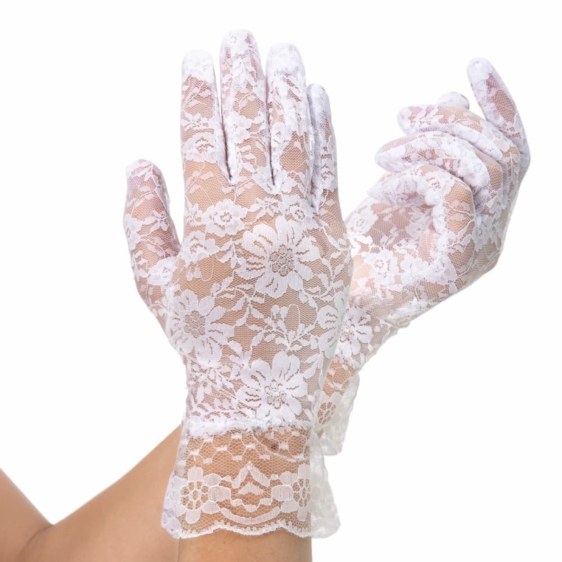 Rękawiczki koronkowe białe, 26 cm