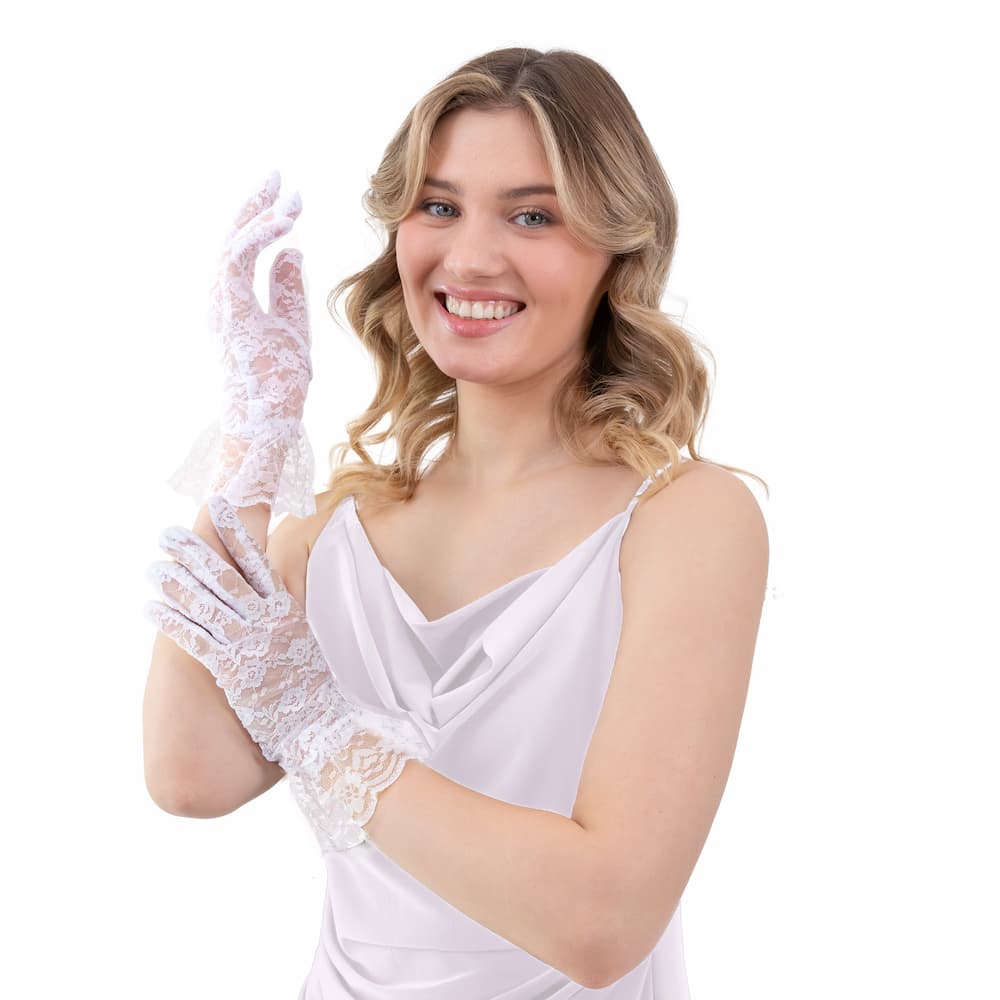 Klasyczne rękawiczki koronkowe białe 26 cm to ponadczasowy dodatek, który od razu kojarzy się ze ślubem i eleganckim przyjęciem. Sięgają nieco ponad nadgarstek, pięknie wydłużając dłonie i nadając im subtelnego, dziewczęcego uroku. Doskonale sprawdzą się jako rękawiczki dla panny młodej, druhny lub na komunię, a także do stylizacji retro. Biały kolor fantastycznie komponuje się z koronkowymi sukniami, welonem i delikatną biżuterią. Jeśli chcesz, by Twój strój wyglądał jak z romantycznego filmu, wybierz te białe rękawiczki koronkowe.
