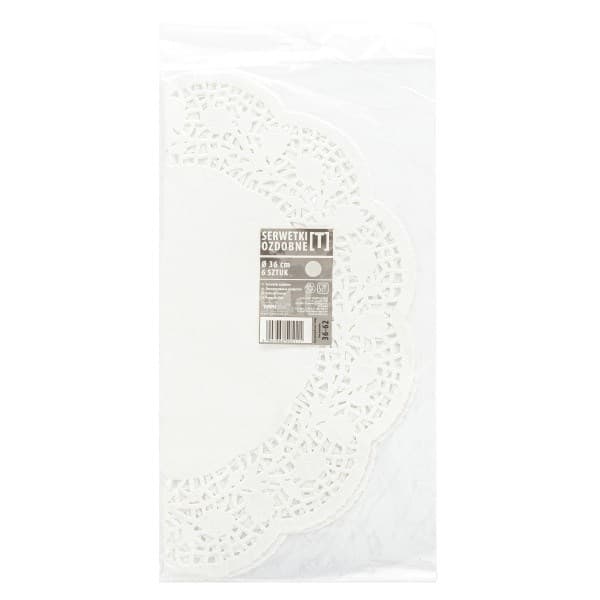 Serwetki papierowe dekoracyjne ażurowe białe okrągłe, 36 cm 6 szt.