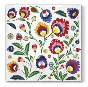 Papierowe serwetki Folk mają rozmiar ok. 33 × 33 cm po rozłożeniu. W opakowaniu znajduje się 20 sztuk.
