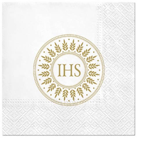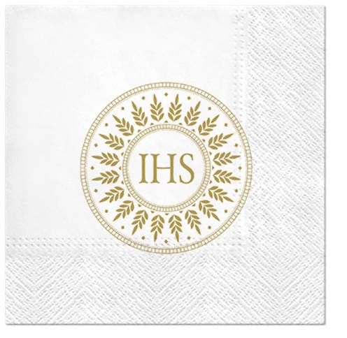 Serwetki papierowe Komunia Święta IHS okrągły, 20 szt.