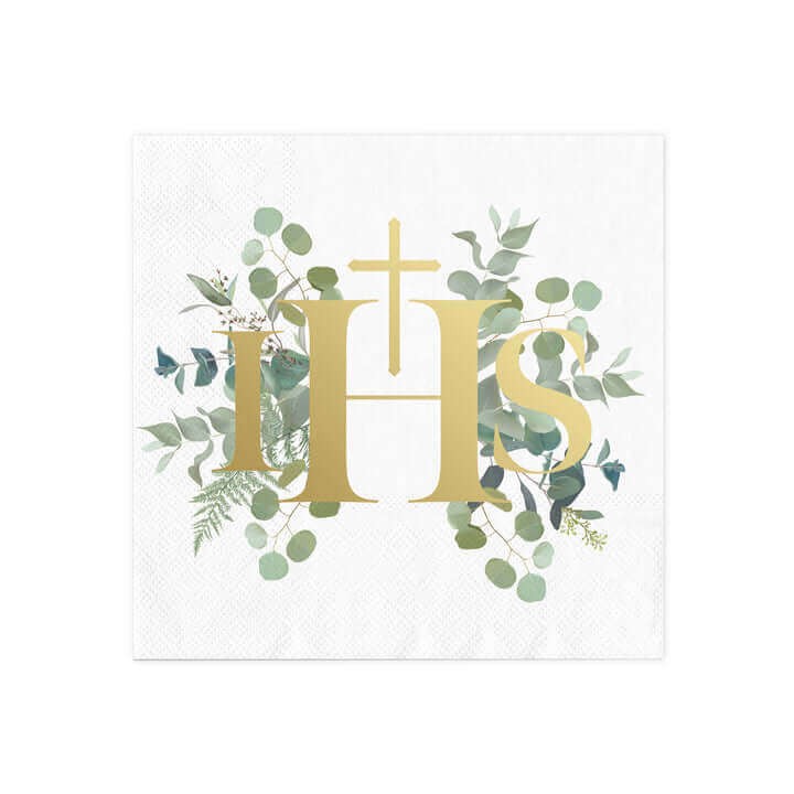 Serwetki papierowe komunijne Komunia Święta IHS eukaliptus, 10 szt.