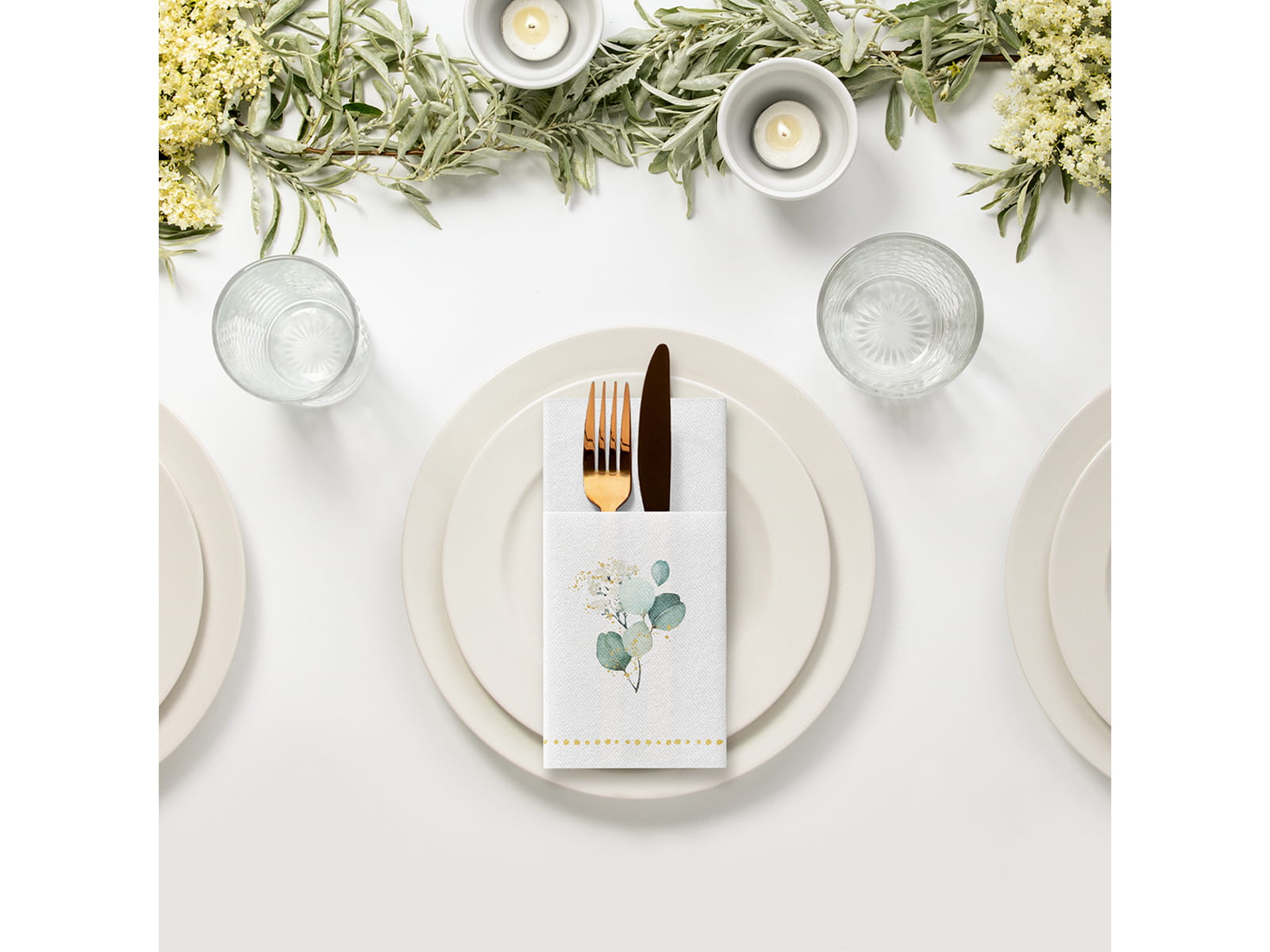 Serwetki papierowe flizelinowe grube kieszonki na sztućce białe Eukaliptus Airlaid, 25 szt.