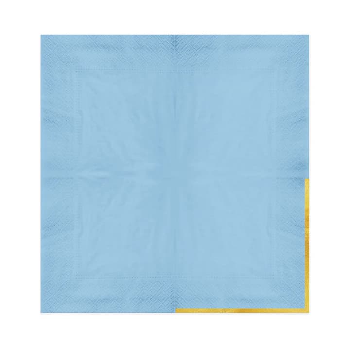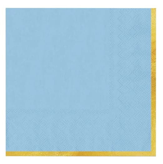 Dodaj wyjątkowego blasku swojemu stołowi. Niebieskie serwetki z subtelnym złotym brzegiem to stylowy dodatek, który podkreśli wyjątkowość każdej chwili. Perfekcyjne na uroczystości w pastelowych barwach, eleganckie kolacje czy kameralne spotkania w gronie najbliższych. Mały detal o wielkim efekcie!