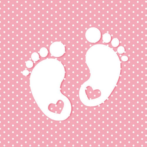 Różowe serwetki na baby shower z dziecięcymi stópkami będą się pięknie prezentować na stole wśród różowej lub białej zastawy. Idealne na baby shower dziewczynki.