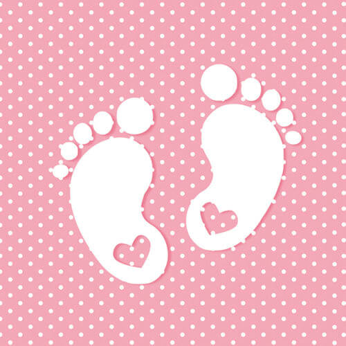 Serwetki papierowe stópki na baby shower różowe, 20 szt.