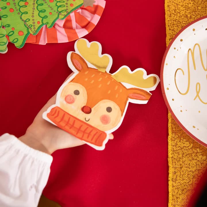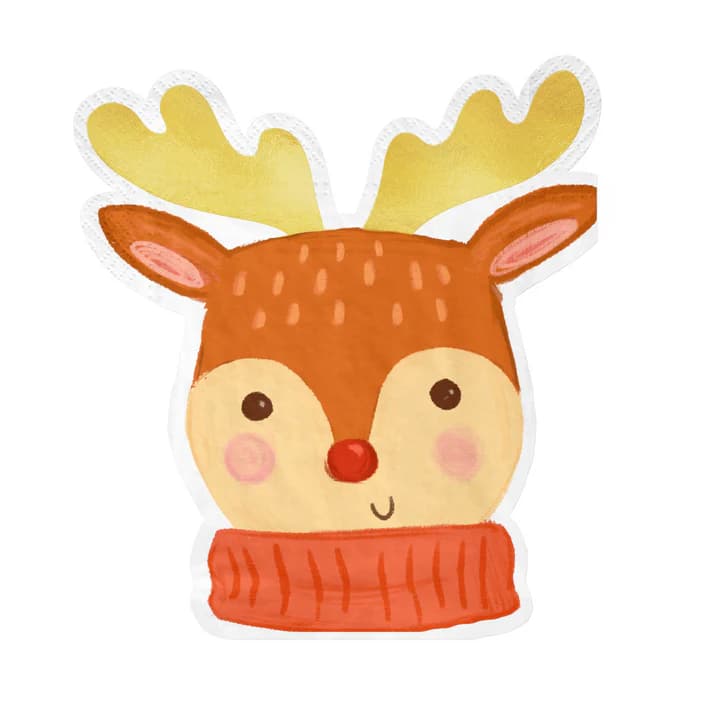 Papierowe serwetki z motywem uśmiechniętego renifera to uroczy dodatek, który wprowadzi świąteczny nastrój do Twojego stołu. Serwetki w kształcie sympatycznego renifera w czerwonym sweterku, z różowymi policzkami i dużymi rogami, dodadzą radosnego akcentu każdemu świątecznemu przyjęciu. Idealne na bożonarodzeniowe spotkania, wigilijne kolacje czy zimowe imprezy.