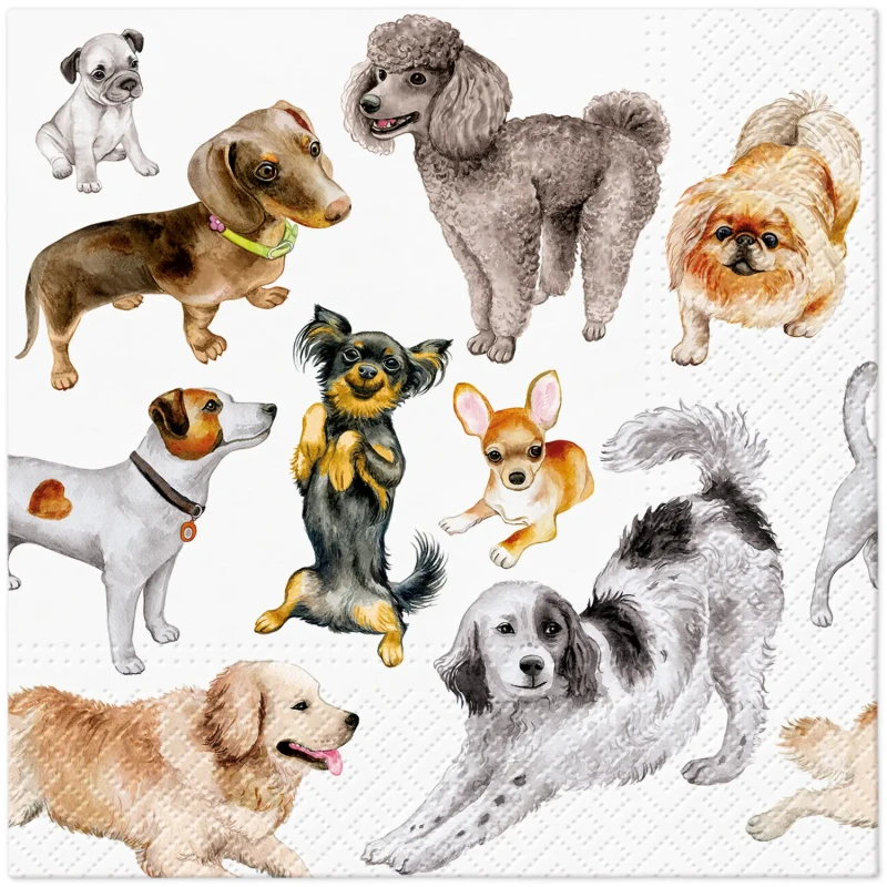 Serwetki z pieskami wprowadzają do stołu merdającą radość i natychmiastowy efekt „ooo!”. Idealne jako dekoracje na urodziny miłośnika puszystych zwierzaków i rodzinne spotkania, zwłaszcza gdy w domu rządzą czworonogi. Wzór sprawia, że nawet zwykła herbatka wygląda jak uroczysty poczęstunek. Zestaw 20 sztuk wystarczy na cały poczęstunek i pamiątkowe zdjęcia. Wybierz serwetki z pieskami, jeśli chcesz dodać aranżacji ciepła i uśmiechu.
