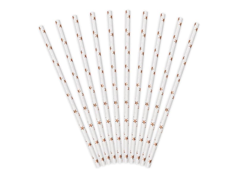 Białe słomki w gwiazdy rose gold mają ok. 19,5 cm długości. W opakowaniu znajduje się 10 sztuk.
