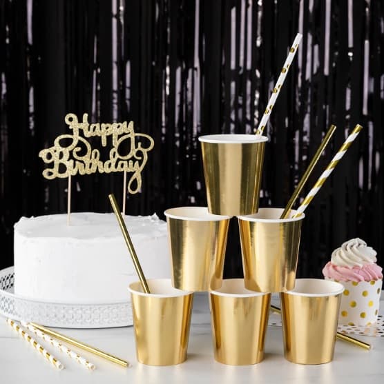Białe słomki w złote kropki to uniwersalny, a zarazem bardzo elegancki wybór na przyjęcia okolicznościowe. Złoty akcent świetnie wkomponuje się w wiele okazji- Chrzest, Komunia, wesele. Napoje urozmaicone o te wzorzyste rurki zaprezentują się jeszcze lepiej!