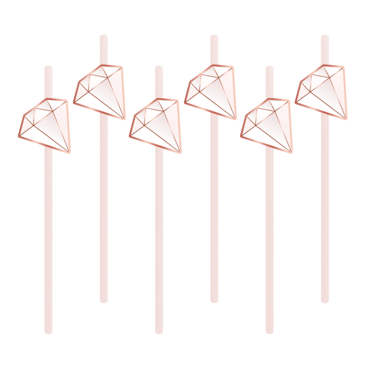 Słomki papierowe z diamentami wspaniale sprawdzą się każdym eleganckim przyjęciu. Szczególnie polecamy je na wieczór panieński. Słomki ozdobione są papierowymi diamentami w białym kolorze z różowo zlotymi zdobieniami.