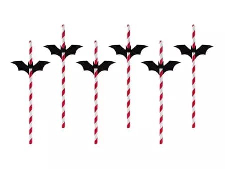 Słomki papierowe z nietoperzem Halloween, 6 szt.