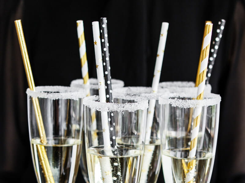 Biało złote słomki papierowe świetnie nadają się zarówno na dziecięce przyjęcia, jak i te dla dorosłych. Dodają elegancji, nie przytłaczając. Pięknie komponują się tak z kolorową zastawą, jak również złotą.