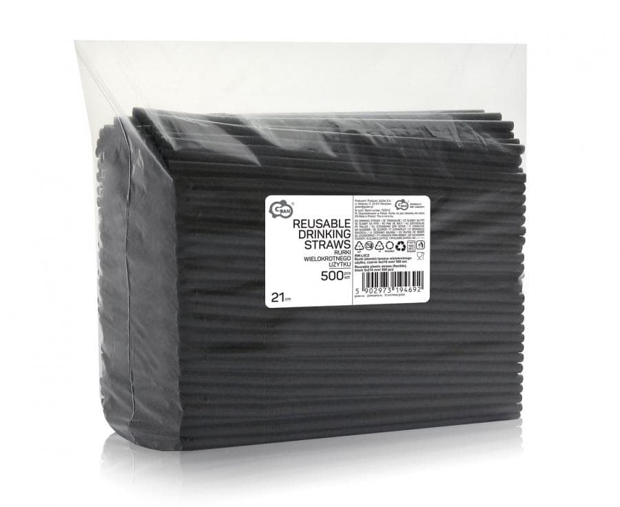 Słomki plastikowe wielokrotnego użytku łamane czarne, 500 szt.