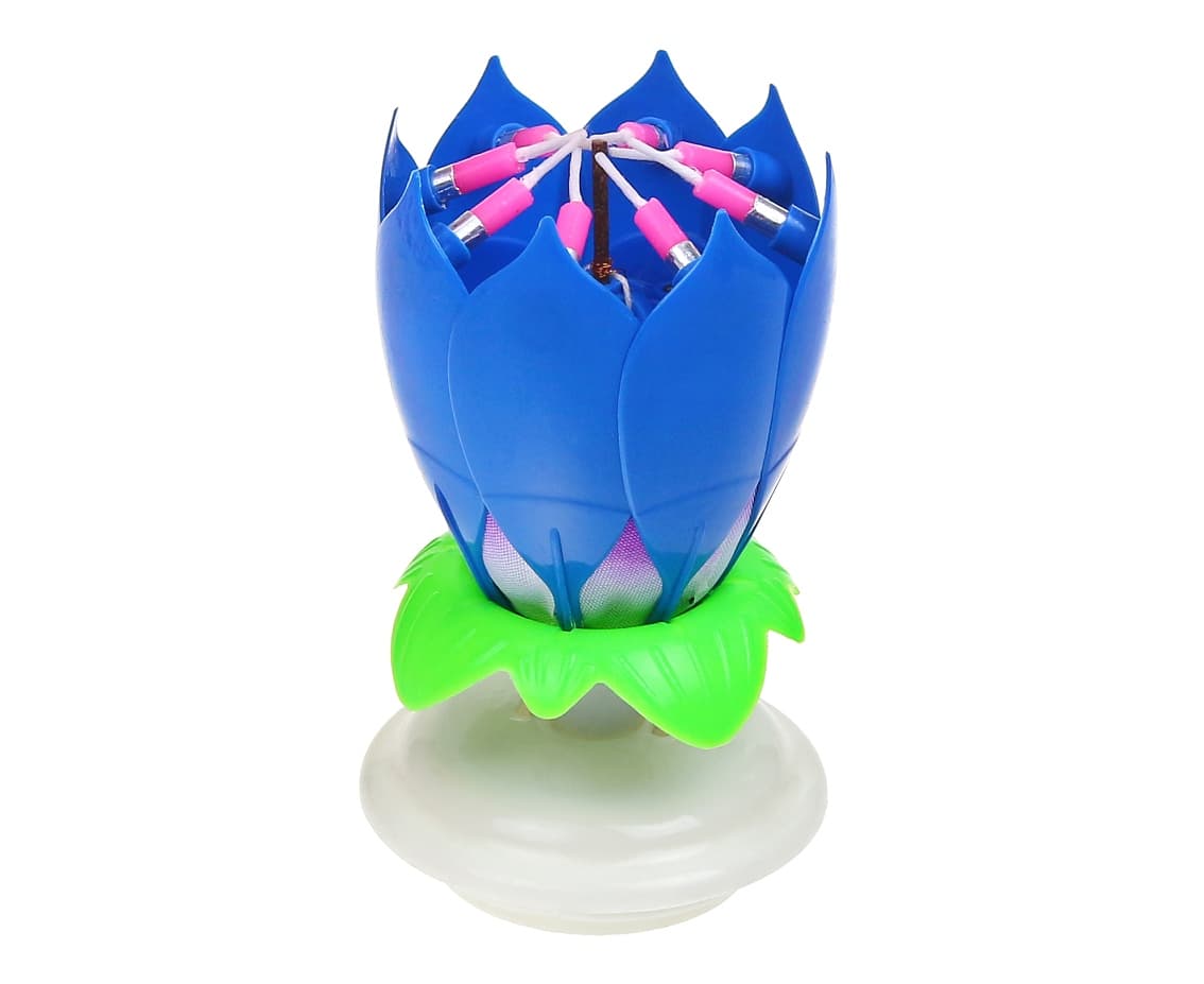 Świeczka grająco-tańcząca Kwiat, niebieska