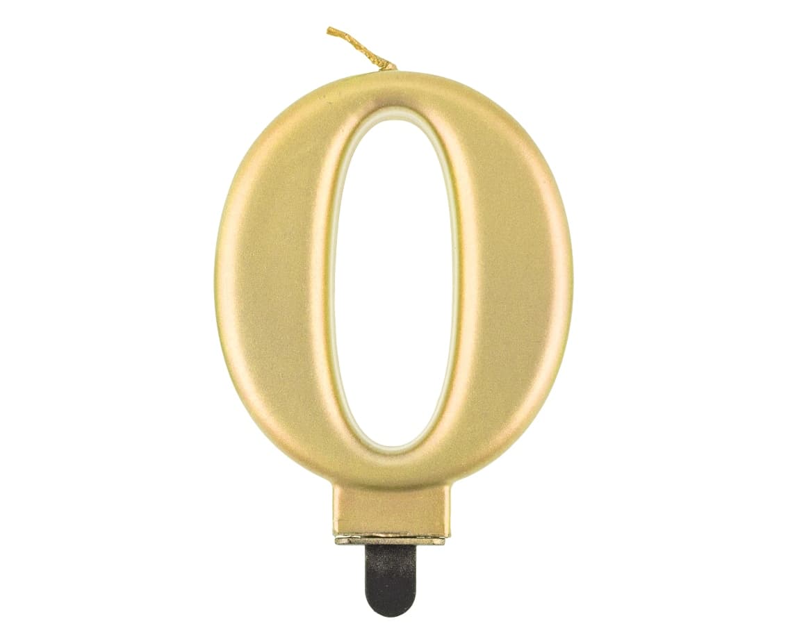 Świeczka cyfra 0 w kolorze złota ma wysokość ok. 8 cm. W opakowaniu znajduje się 1 sztuka.