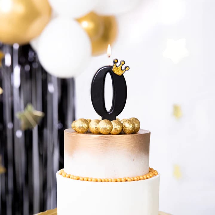 Świeczka na tort cyfra 0 z koroną czarna