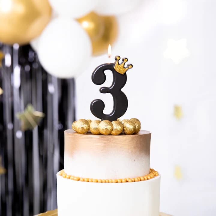 Świeczka na tort cyfra 3 z koroną czarna