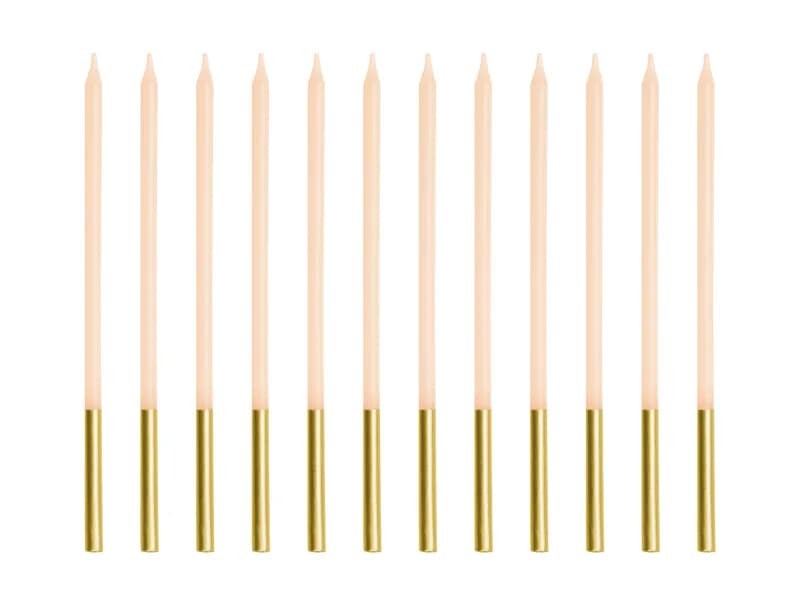 Świeczki na tort proste beżowe, 12 szt.