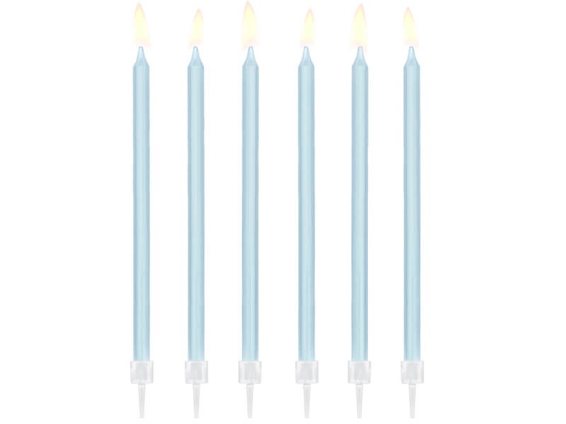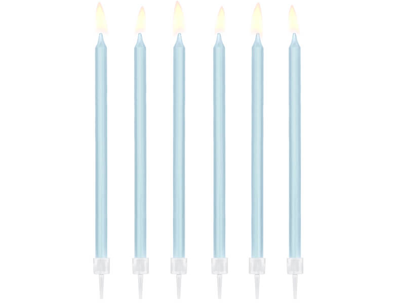 Piękne, długie i gładkie świeczki urodzinowe w kolorze niebieskim idealnie sprawdzą się na roczek chłopca czy baby shower. Wraz z innymi dekoracjami w tej kolorystyce stworzą niesamowitą oprawę dziecięcego przyjęcia.