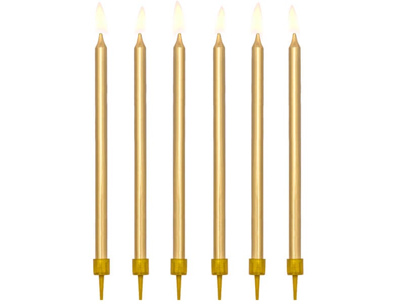 Świeczki urodzinowe na tort złote długie, 12,5 cm