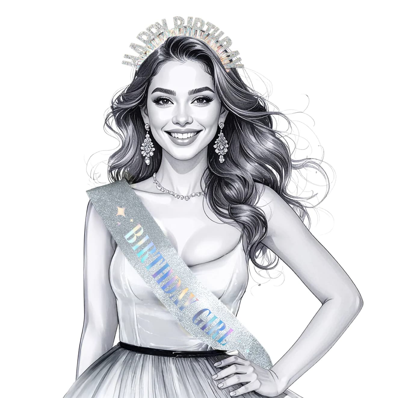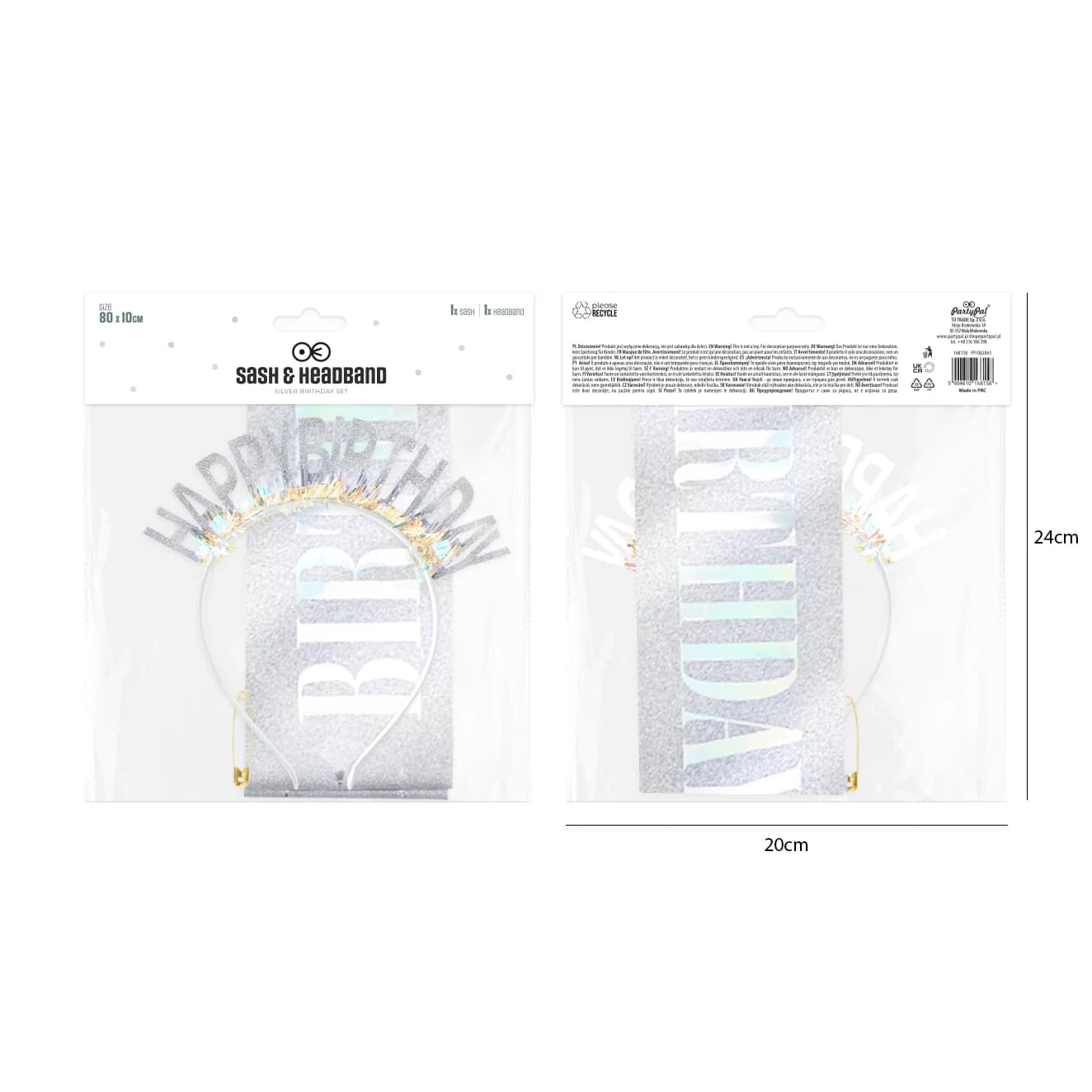 Szarfa i opaska urodzinowa Happy Birthday srebrny - zestaw