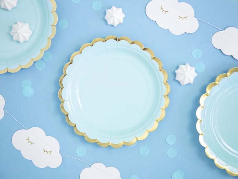 Niebieskie talerzyki papierowe wspaniale będą się prezentować zarówno na roczku chłopca, jak i na baby shower. Świetnie wyglądają na przyjęciu, na którym dominują niebieskie dekoracje. Sprawdzą się także z pastelowymi dodatkami.