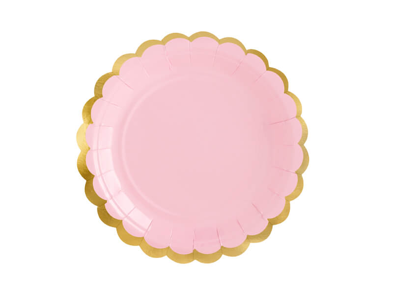 Talerzyki papierowe jasny różowy złoty brzeg, 18 cm 6 szt.