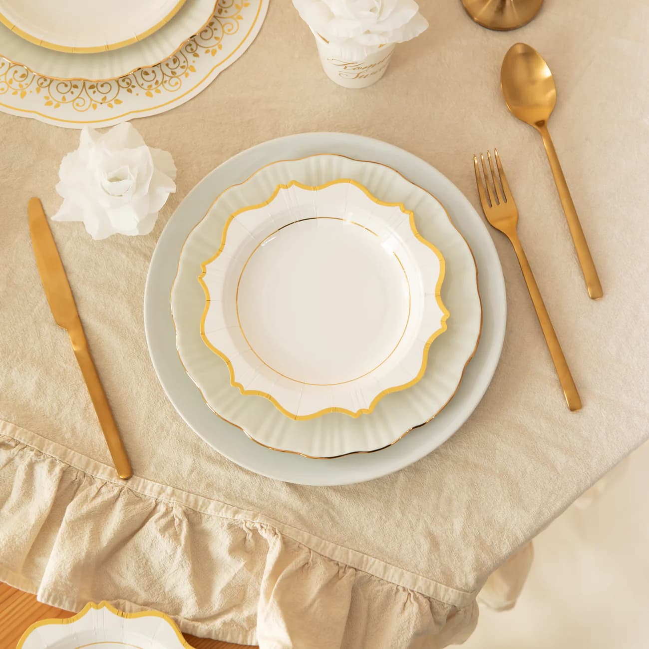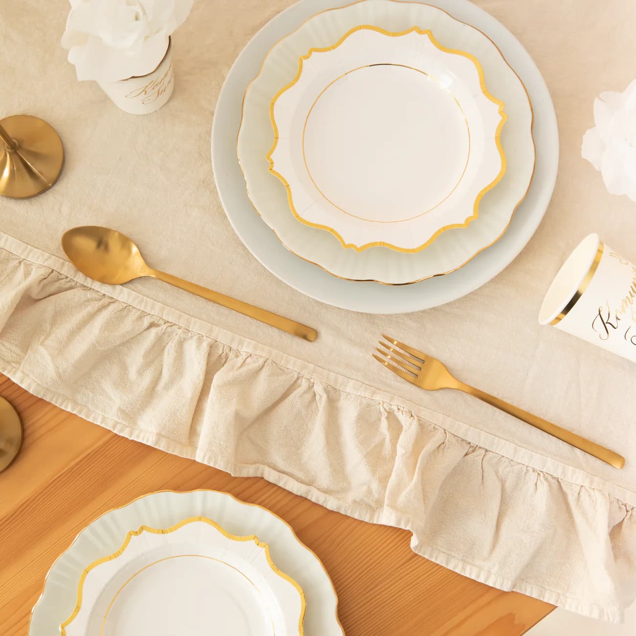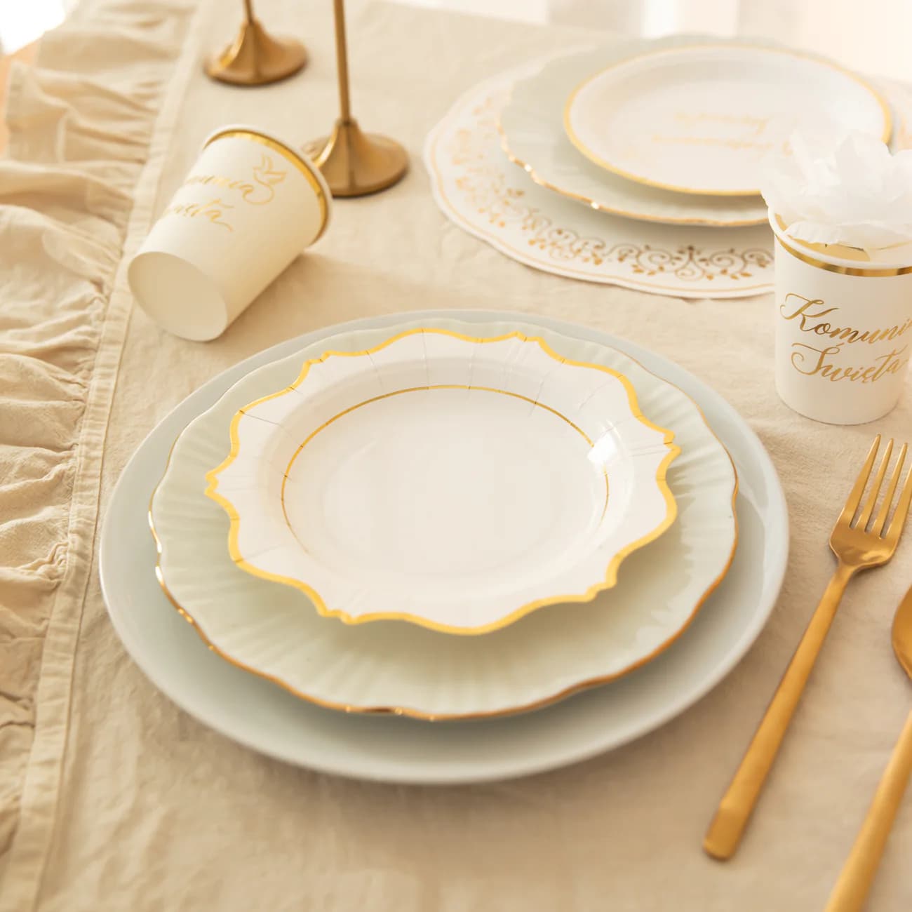 Elegancja w każdym detalu. Wyjątkowe białe talerzyki z subtelnym złotym brzegiem nadadzą Twojemu przyjęciu szyku i klasy. Idealne na wesela, urodziny, rocznice czy inne eleganckie spotkania. Piękne, praktyczne i jednorazowe – niech Twój stół zachwyca.
