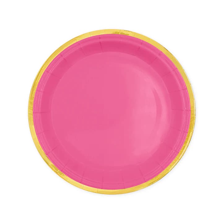 Talerzyki papierowe różowe fuksja ze złotym brzegiem Classic Gold, 18 cm 6 szt.