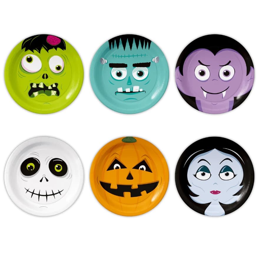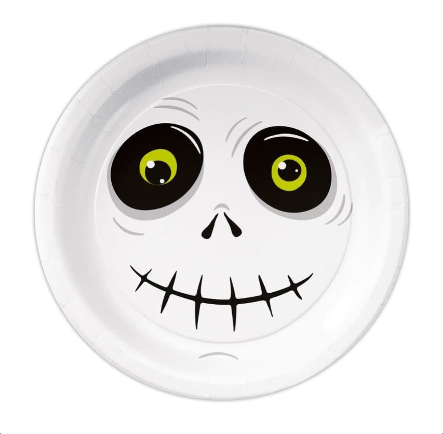 Talerzyki papierowe Halloween to świetne urozmaicenie imprezy, dzięki któremu przysmaki na stole będą prezentować się rewelacyjnie. Szkielet, zoombie, dynia oraz inne potwory z zapałem zachęcają do smakowania z nich potwornie pysznych smakołyków.