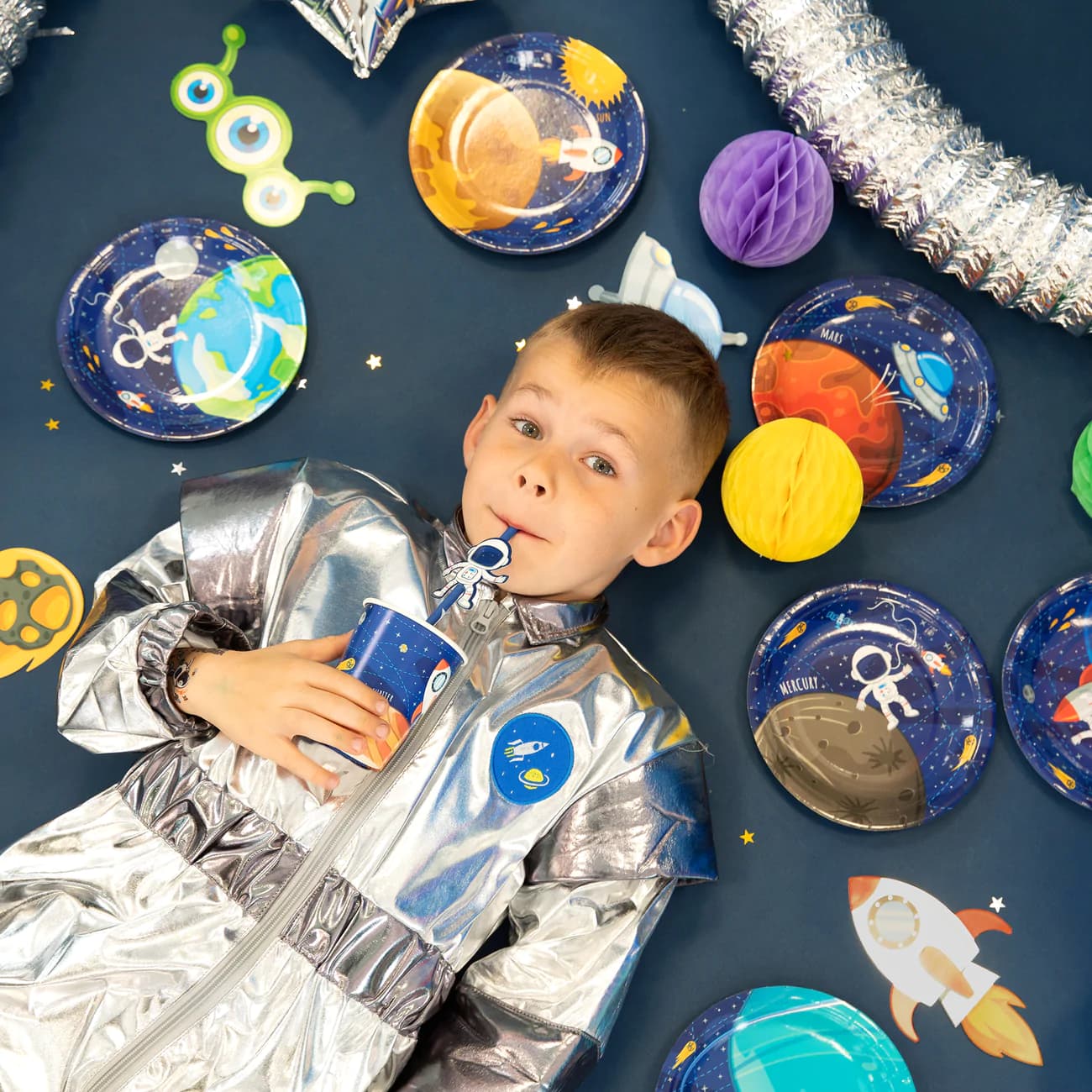 Talerzyki papierowe Kosmos Planety spełnią nie tylko rolę funkcjonalną, ale i dekoracyjną, a nawet edukacyjną! Na każdym talerzyku znajduje się inny wzór z planetą Układu Słonecznego. Dzięki temu każde dziecko będzie wiedziało, który talerzyk jest jego. Dodatkowo dzięki pięknym, miłym dla oka grafikom dzieci zapamiętają wszystkie planety.