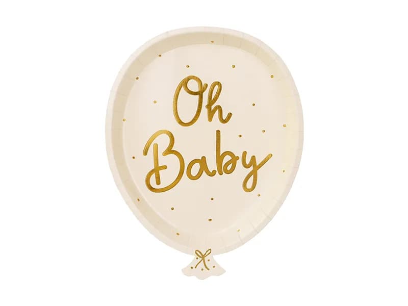 Talerzyki w kształcie balona z napisem "Oh Baby" w kolorze beżowym to klasyczny wybór na przyjęcie Baby Shower. Neutralny kolor urozmaicony o metalizowany złoty napis pięknie prezentuje się na imprezowym stole. Można je łączyć z wieloma kolorami, a efekt wciąż będzie zachwycał oko. Sprawdzą się perfekcyjnie zarówno dla nadchodzącego chłopczyka, jak i dziewczynki.